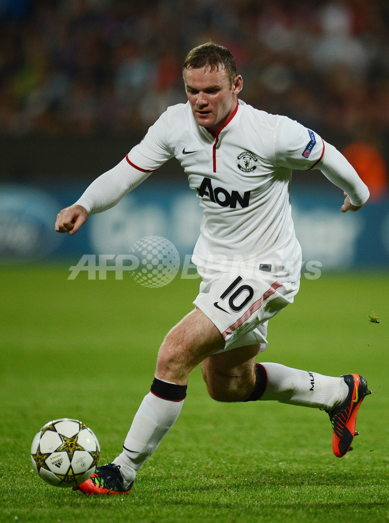 ドリブルするマンチェスター・ユナイテッドのウェイン・ルーニー(Wayne Rooney、2012年10月2日撮影)。(c)AFP/DANIEL MIHAILESCU