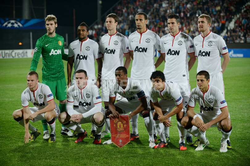 試合前の写真撮影に臨むマンチェスター・ユナイテッドの選手(2012年10月2日撮影)。(c)AFP/DANIEL MIHAILESCU