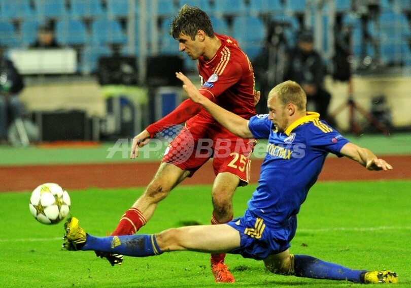 ベラルーシ勢と公式戦で初対戦となった欧州チャンピオンズリーグ2011-12(UEFA Champions League 2011-12)準優勝のバイエルンにとって、ミュンヘンへの帰路は長いフライトとなったが、一方のホームのBATEボリソフは勝利にふさわしいプレーをした。(c)AFP