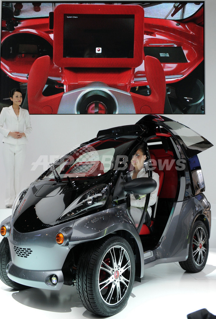 写真は、トヨタ自動車(Toyota Motor)が披露した、超小型一人乗り電気自動車(EV)「コムス」をベースにしたコンセプトカー「Smart INSECT(スマート・インセクト)」。ドライバーの顔や動作を認識し、ドライバーとコミュニケーションする(2012年10月2日撮影)。(c)AFP/Yoshikazu TSUNO