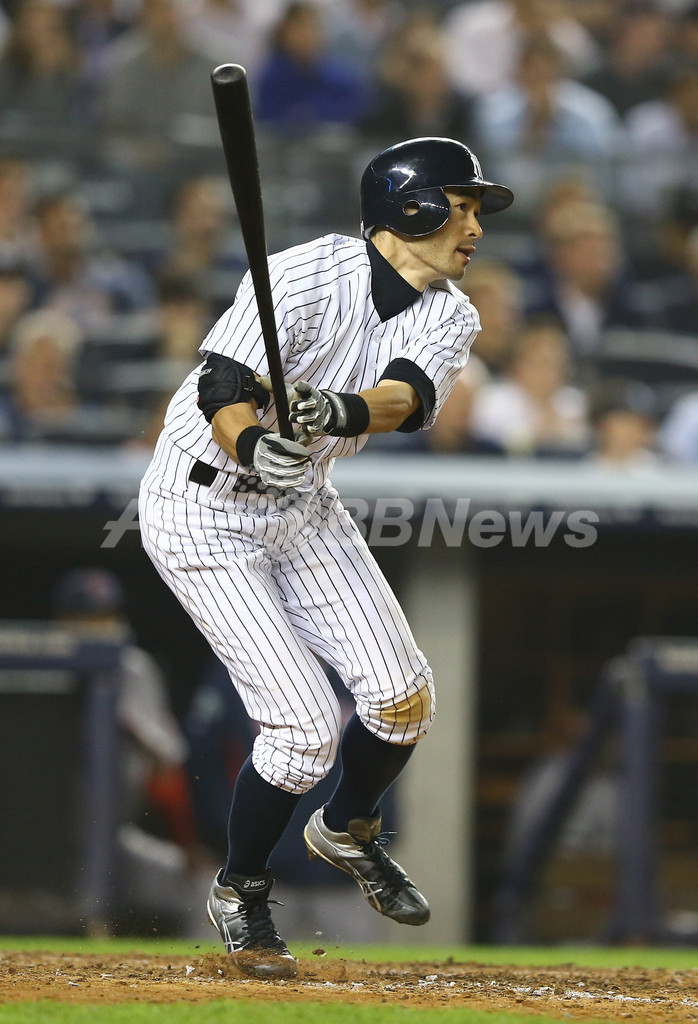 7回に2点適時二塁打を放つニューヨーク・ヤンキースのイチロー(Ichiro Suzuki、2012年10月3日撮影)。(c)AFP/Getty Images/Al Bello