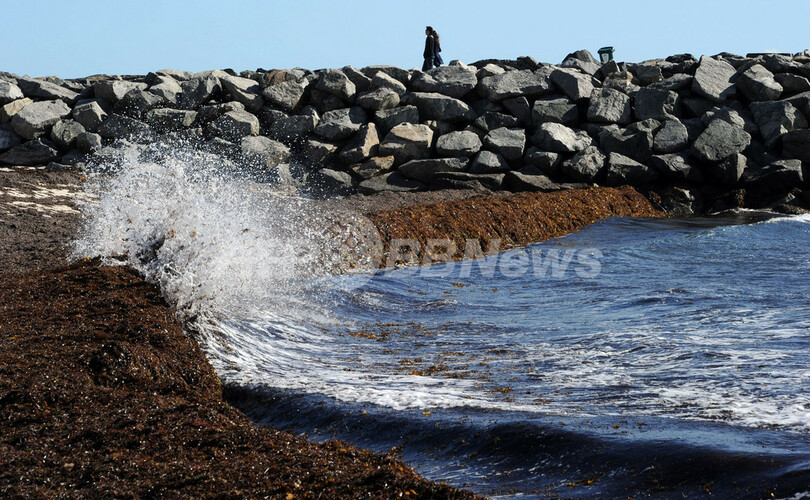 写真は波が大量の海藻を打ちつけるコッテスロービーチ(2012年10月4日撮影)。(c)AFP/Greg WOOD