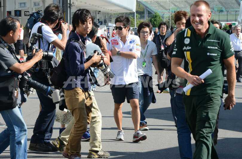 フリー走行開始を前にパドックを歩くザウバーの小林可夢偉(2012年10月5日撮影)。(c)AFP/Toru YAMANAKA