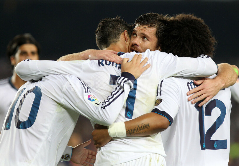 対するレアル・マドリードはより鋭い攻めを展開し、その報いを得る形で前半23分、カリム・ベンゼマ(Karim Benzema)のパスを受けたロナウドが左足でニアサイドへの低いシュートを決めてGKビクトル・バルデス(Victor Valdes)を破った。