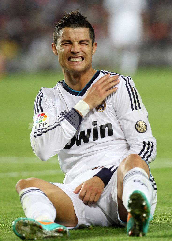 肩を押さえるレアル・マドリードのクリスティアーノ・ロナウド(Cristiano Ronaldo、2012年10月7日撮影)。(c)AFP/QUIQUE GARCIA