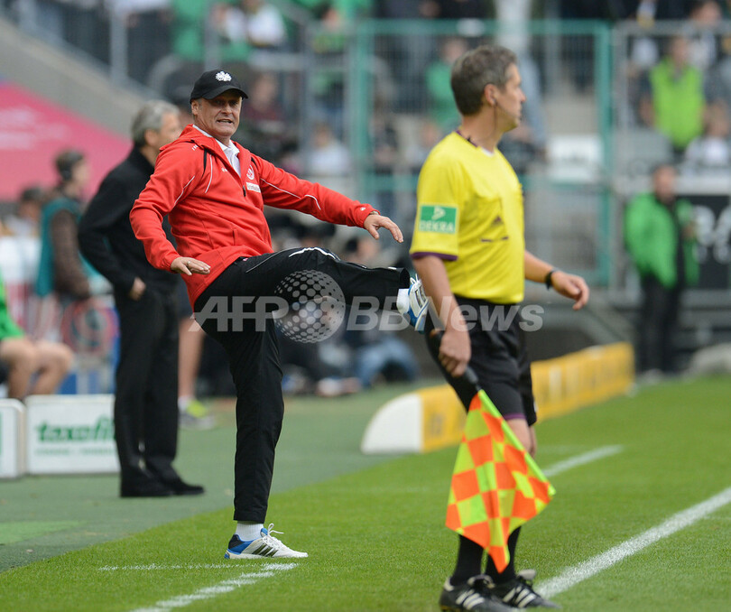 試合中にいら立ちをあらわにするフランクフルトのアルミン・フェー(Armin Veh)監督(左、2012年10月7日撮影)。(c)AFP/PATRIK STOLLARZ