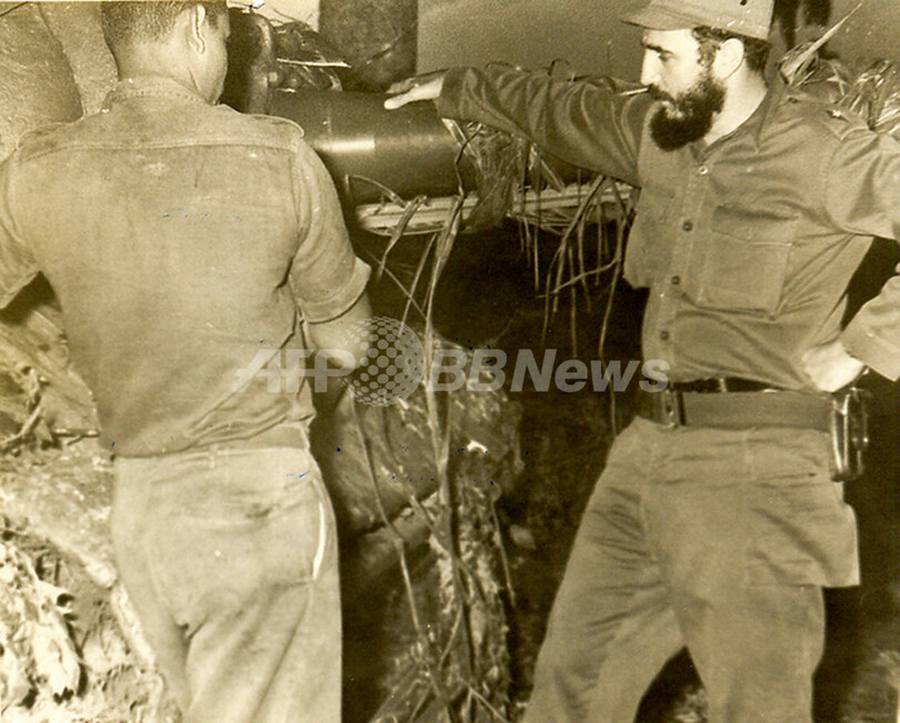 写真は、キューバ危機の最中に砲兵部隊を視察する当時キューバ首相のフィデル・カストロ(Fidel Castro)氏(右、1962年撮影、撮影場所不明)。(c)AFP/Granma
