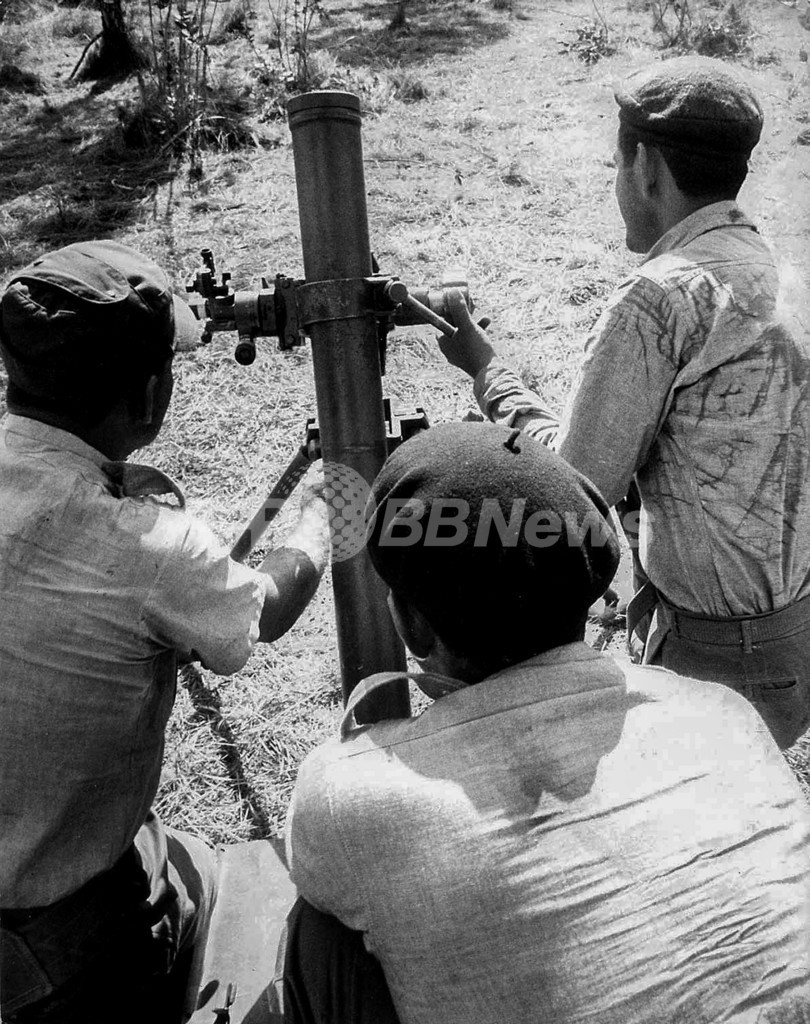 写真は、キューバで、82ミリ迫撃砲を設置する民兵ら(1962年10月撮影)。(c)AFP/Granma
