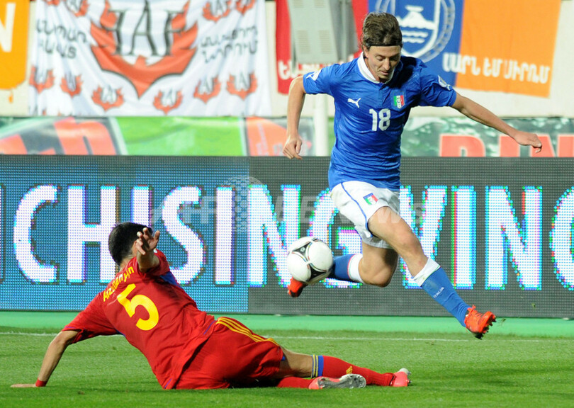 その後、ホームのアルメニアが試合の主導権を握り、イタリアの守備陣を攻め立てると、同27分にヘンリク・ムヒタリアン(Henrikh Mkhitaryan)がドリブル突破から同点ゴールを決めた。
