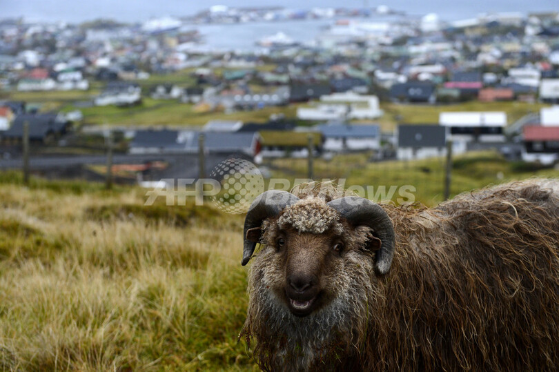 【10月13日 AFP】北大西洋に浮かぶデンマーク領フェロー諸島(Faroe Islands)にあるストレイモイ島(Streymoy Island)のトースハウン(Torshavn)で草をはむヒツジ。フェロー諸島の主な産業は漁業と牧羊だ。(c)AFP
