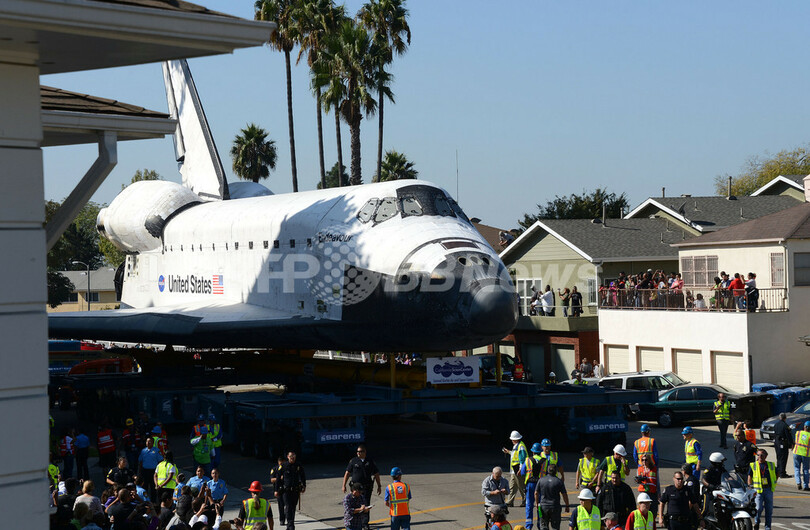 【10月14日 AFP】米ロサンゼルス(Los Angeles)と隣接するイングルウッド(Inglewood)の市街地で13日、退役した米スペースシャトル「エンデバー(Endeavour)」を、永久展示先の博物館に向かって陸路輸送する作業が行われた。
