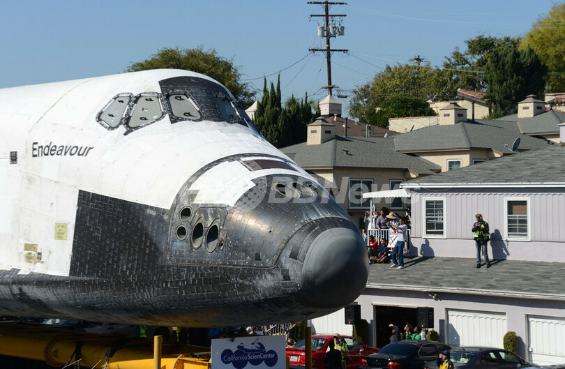 【10月14日 AFP】米ロサンゼルス(Los Angeles)と隣接するイングルウッド(Inglewood)の市街地で13日、退役した米スペースシャトル「エンデバー(Endeavour)」を、永久展示先の博物館に向かって陸路輸送する作業が行われた。