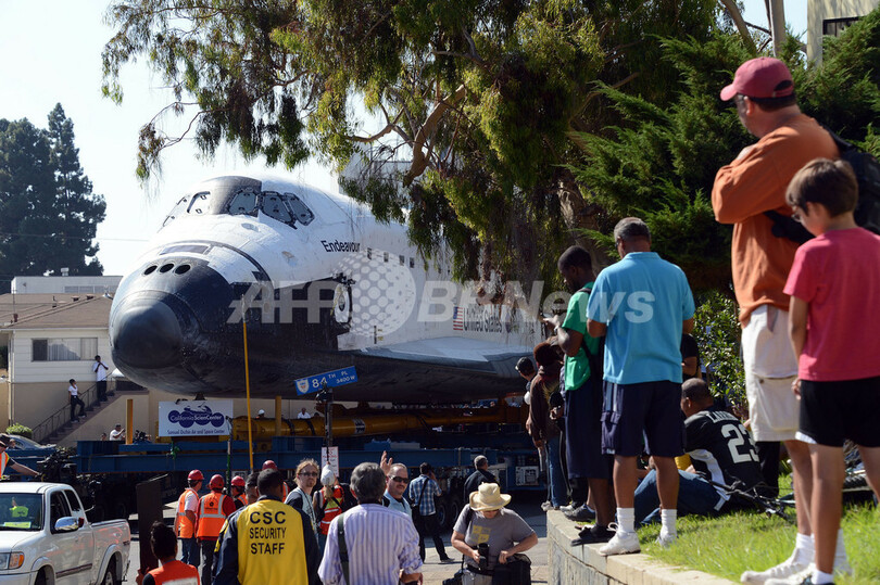 【10月14日 AFP】米ロサンゼルス(Los Angeles)と隣接するイングルウッド(Inglewood)の市街地で13日、退役した米スペースシャトル「エンデバー(Endeavour)」を、永久展示先の博物館に向かって陸路輸送する作業が行われた。