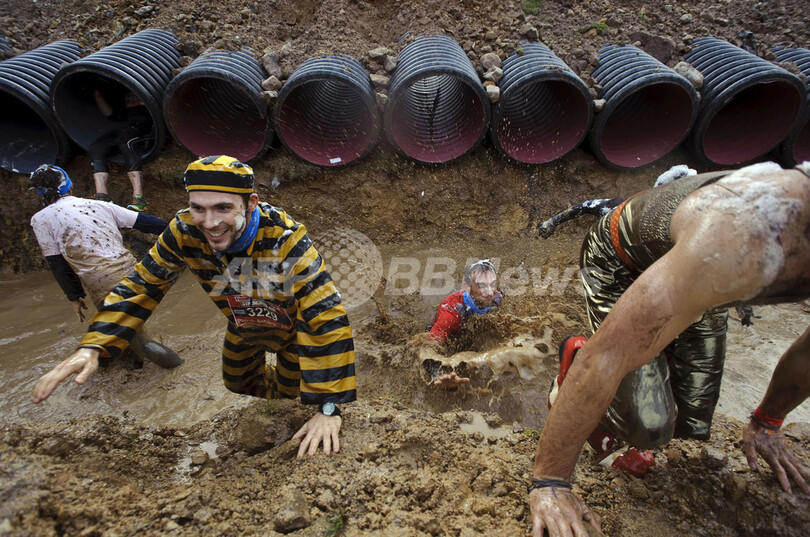 【10月15日 AFP】仏東部ラブレス(La Bresse)で14日、世界最強を自負する障害物レース「ストロングマンラン(Strongmanrun)」が開催され、思い思いのいでたちをした参加者たちが泡まみれ、泥だらけになりながらコースを駆け抜けた。このレースは英国の強烈なミント風味タブレットメーカー「フィッシャーマンズフレンド(Fisherman's Friend)」が主催するもので、自然の野山にさまざまな障害物を張り巡らせたコースで「最強」を競う。(c)AFP