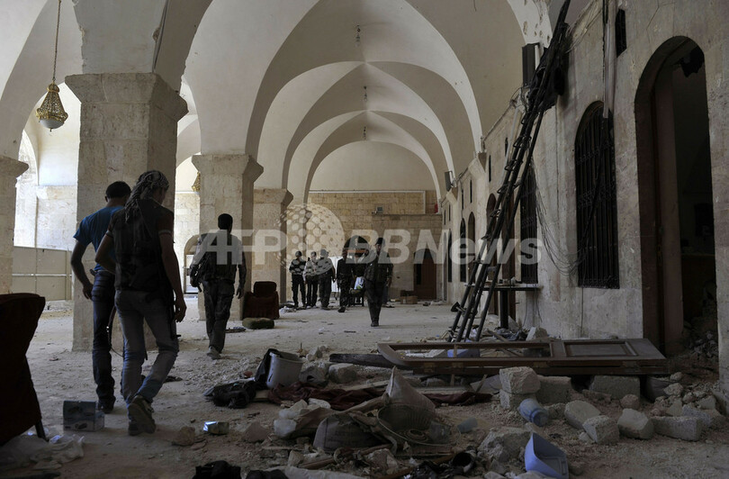 【10月15日 AFP】シリア北部アレッポ(Aleppo)では、「古代都市」として世界遺産に登録されている旧市街にあるウマイヤド・モスク(Umayyad Mosque)を舞台に、反体制派と政府軍の激しい攻防が続いている。一時は反体制派がモスクを掌握していたが、14日には再び政府軍がモスクを制圧した。戦闘により、モスクは火災に見舞われるなど損傷を受けている。(c)AFP