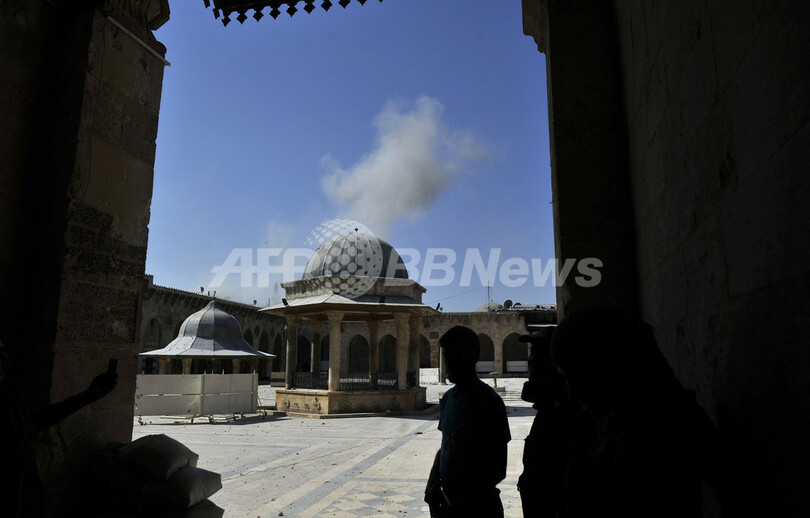 【10月15日 AFP】シリア北部アレッポ(Aleppo)では、「古代都市」として世界遺産に登録されている旧市街にあるウマイヤド・モスク(Umayyad Mosque)を舞台に、反体制派と政府軍の激しい攻防が続いている。一時は反体制派がモスクを掌握していたが、14日には再び政府軍がモスクを制圧した。戦闘により、モスクは火災に見舞われるなど損傷を受けている。(c)AFP