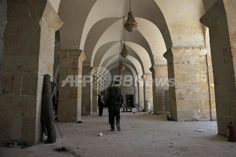 【10月15日 AFP】シリア北部アレッポ(Aleppo)では、「古代都市」として世界遺産に登録されている旧市街にあるウマイヤド・モスク(Umayyad Mosque)を舞台に、反体制派と政府軍の激しい攻防が続いている。一時は反体制派がモスクを掌握していたが、14日には再び政府軍がモスクを制圧した。戦闘により、モスクは火災に見舞われるなど損傷を受けている。(c)AFP