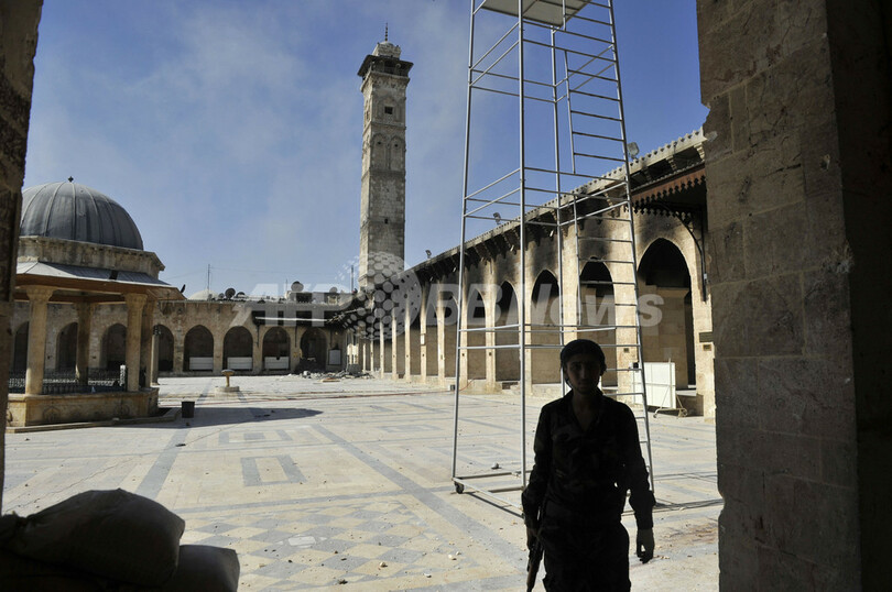 【10月15日 AFP】シリア北部アレッポ(Aleppo)では、「古代都市」として世界遺産に登録されている旧市街にあるウマイヤド・モスク(Umayyad Mosque)を舞台に、反体制派と政府軍の激しい攻防が続いている。一時は反体制派がモスクを掌握していたが、14日には再び政府軍がモスクを制圧した。戦闘により、モスクは火災に見舞われるなど損傷を受けている。(c)AFP