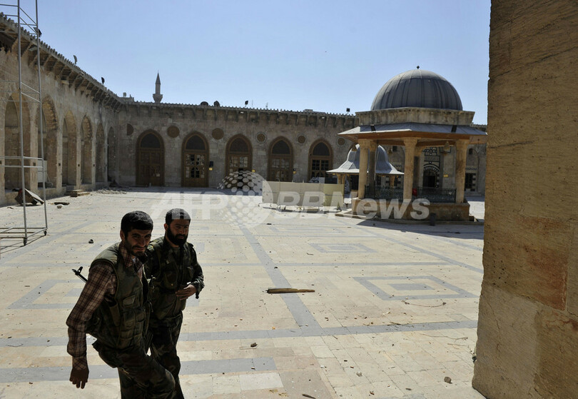 【10月15日 AFP】シリア北部アレッポ(Aleppo)では、「古代都市」として世界遺産に登録されている旧市街にあるウマイヤド・モスク(Umayyad Mosque)を舞台に、反体制派と政府軍の激しい攻防が続いている。一時は反体制派がモスクを掌握していたが、14日には再び政府軍がモスクを制圧した。戦闘により、モスクは火災に見舞われるなど損傷を受けている。(c)AFP