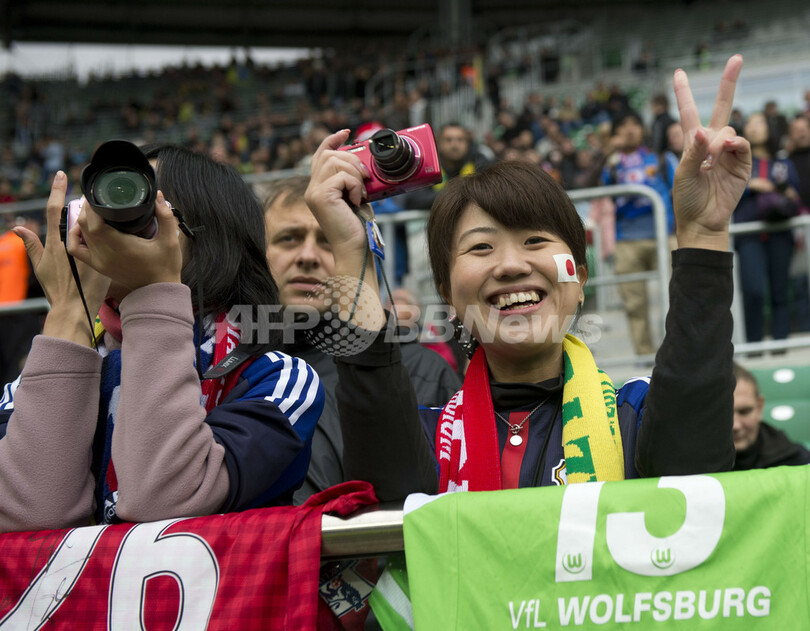 声援を送る日本のサポーター(2012年10月16日撮影)。(c)AFP/ODD ANDERSEN
