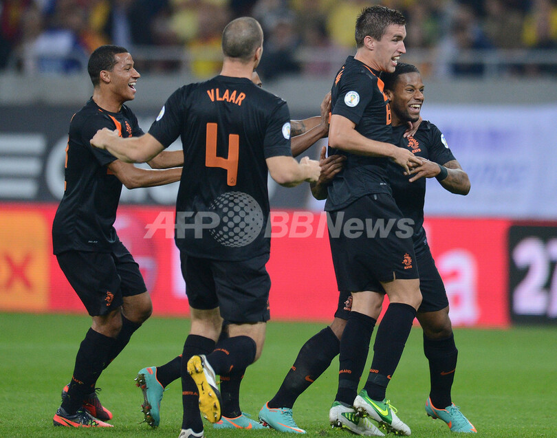 【10月17日 AFP】2014年サッカーW杯ブラジル大会(2014 World Cup)欧州予選は16日、各地で行われ、グループDのオランダは4-1でルーマニアに勝利した。
