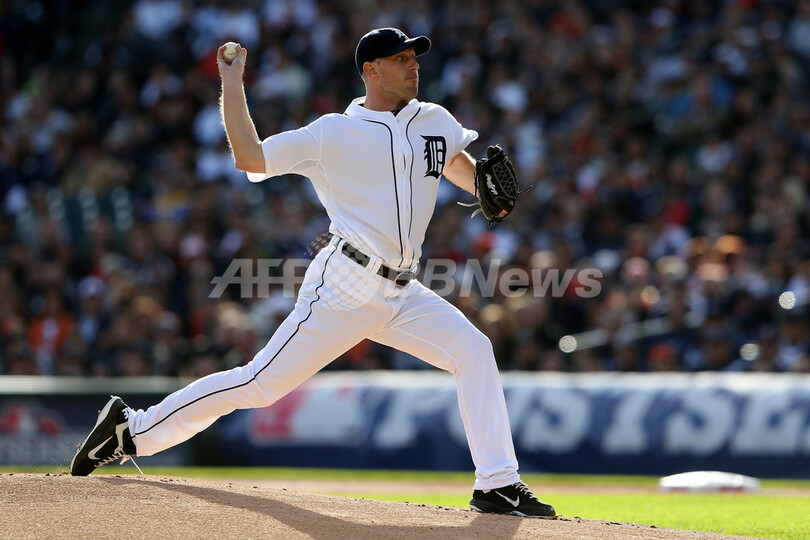 先発登板するデトロイト・タイガースのマックス・シャーザー(Max Scherzer、2012年10月18日撮影)。(c)AFP/Getty Images/Leon Halip