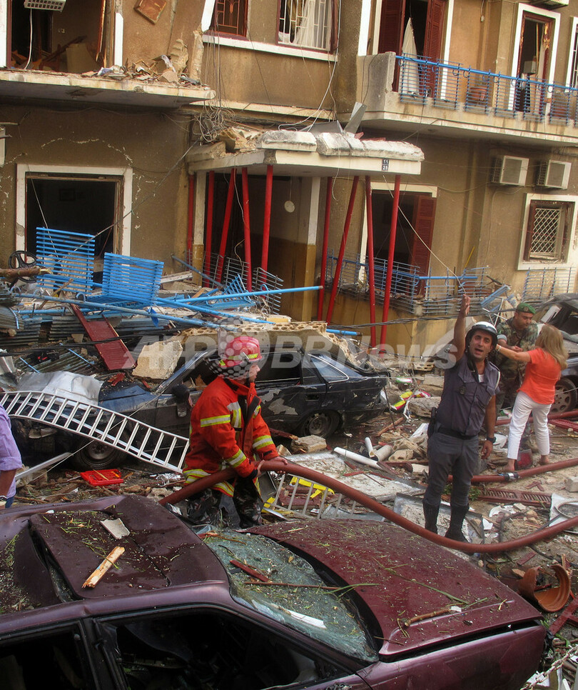 爆発は反シリアで知られるキリスト教政党ファランヘ(Phalange)の本部からわずか200メートルの場所で起きた。犠牲者の中には治安機関の情報部門トップで、反シリア勢力と関わりのあったウィサム・ハッサン(Wissam al-Hassan)氏が含まれていたことから、レバノン国内ではシリアのバッシャール・アサド(Bashar al-Assad)大統領が事件の背後にいると非難する声が上がっている。(c)AFP