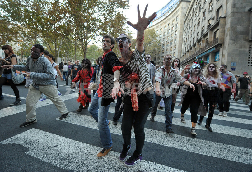ニュース ライフ こぼれ話 ベオグラードで「ゾンビ・ウォーク」開催 2012年10月21日 12:47 発信地:ベオグラード/セルビア [ ヨーロッパ セルビア ] このニュースをシェア ‹ › ❮ 8/13 ❯ セルビアの首都ベオグラード(Belgrade)市内で「ゾンビ・ウォーク」が開かれ、特殊メークでゾンビに扮した参加者らが街に繰り出した(2012年10月20日撮影)。(c)AFP/ANDREJ ISAKOVIC 画像作成中 ! 【10月21日 AFP】セルビアの首都ベオグラード(Belgrade)市内で「ゾンビ・ウォーク」が開かれ、特殊メークでゾンビに扮した参加者らが街に繰り出した。(c)AFP ライフ 一覧へ> メディア・報道関係・法人の方向け 写真・動画 購入のお問合せ>