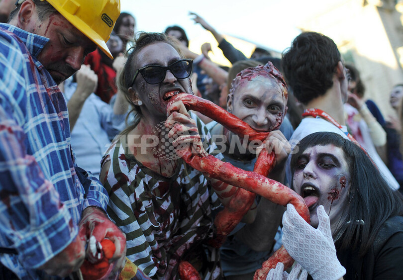ニュース ライフ こぼれ話 ベオグラードで「ゾンビ・ウォーク」開催 2012年10月21日 12:47 発信地:ベオグラード/セルビア [ ヨーロッパ セルビア ] このニュースをシェア ‹ › ❮ 6/13 ❯ セルビアの首都ベオグラード(Belgrade)市内で「ゾンビ・ウォーク」が開かれ、特殊メークでゾンビに扮した参加者らが街に繰り出した(2012年10月20日撮影)。(c)AFP/ANDREJ ISAKOVIC 画像作成中 ! 【10月21日 AFP】セルビアの首都ベオグラード(Belgrade)市内で「ゾンビ・ウォーク」が開かれ、特殊メークでゾンビに扮した参加者らが街に繰り出した。(c)AFP ライフ 一覧へ> メディア・報道関係・法人の方向け 写真・動画 購入のお問合せ>