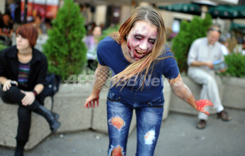 ニュース ライフ こぼれ話 ベオグラードで「ゾンビ・ウォーク」開催 2012年10月21日 12:47 発信地:ベオグラード/セルビア [ ヨーロッパ セルビア ] このニュースをシェア ‹ › ❮ 4/13 ❯ セルビアの首都ベオグラード(Belgrade)市内で「ゾンビ・ウォーク」が開かれ、特殊メークでゾンビに扮した参加者らが街に繰り出した(2012年10月20日撮影)。(c)AFP/ANDREJ ISAKOVIC 画像作成中 ! 【10月21日 AFP】セルビアの首都ベオグラード(Belgrade)市内で「ゾンビ・ウォーク」が開かれ、特殊メークでゾンビに扮した参加者らが街に繰り出した。(c)AFP ライフ 一覧へ> メディア・報道関係・法人の方向け 写真・動画 購入のお問合せ>