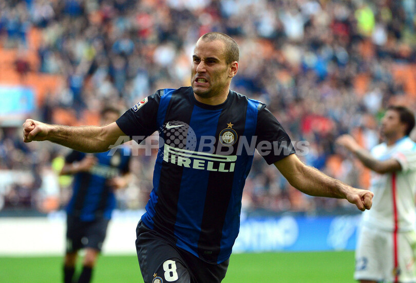 インテルは後半40分、10月は無得点ながらも、この試合の先制点の起点となったディエゴ・ミリート(Diego Milito)のアシストから、パラシオがインテルでの初ゴールを挙げた。(c)AFP/Emmanuel Barranguet