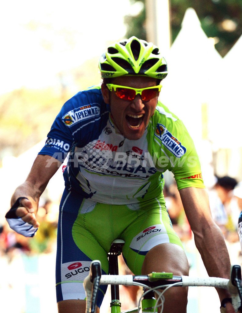 優勝に歓喜するリクイガス・キャノンデールのイヴァン・バッソ(2012年10月21日撮影)。(c)AFP/Yoshikazu TSUNO