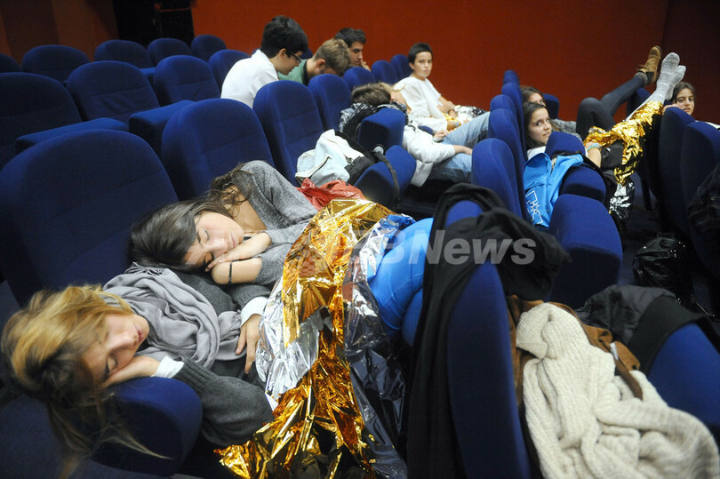 写真は、スポーツセンターに避難した人々(2012年10月20日撮影)。(c)AFP/REMY GABALDA
