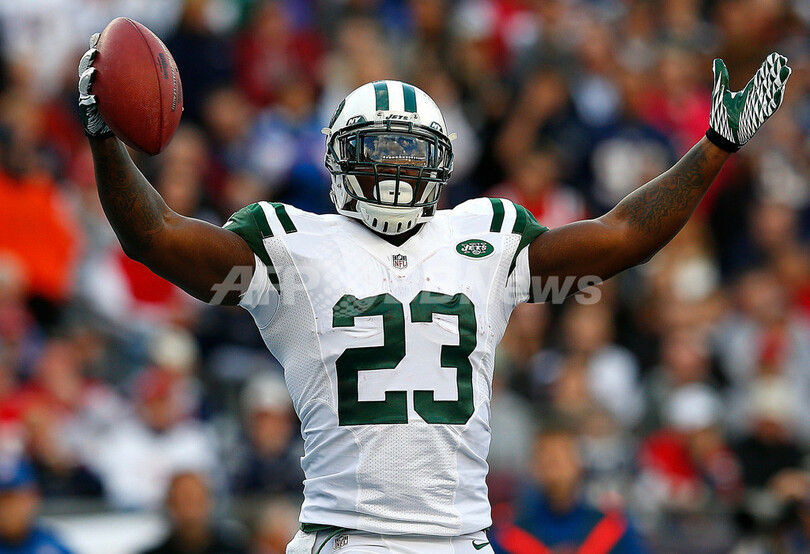 タッチダウンを決め歓喜するニューヨーク・ジェッツのション・グリーン(Shonn Greene、2012年10月21日撮影)。(c)AFP/Getty Images/Jim Rogash