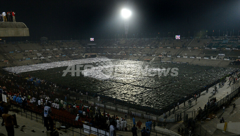 また20日夜には、同競技場に集まった4万2813人が国歌を斉唱し、インドで作られた1万5243人の国歌斉唱人数の最多記録を更新した。(c)AFP
