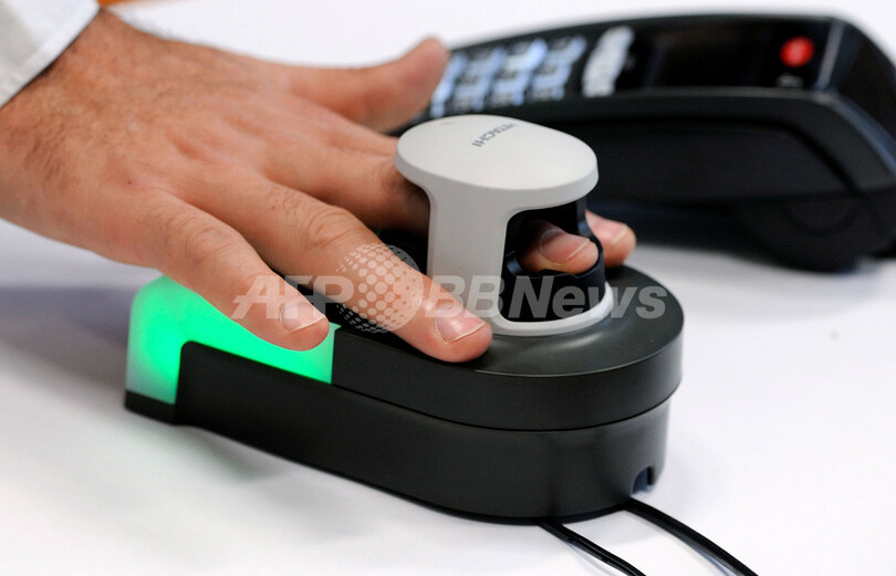 写真は、仏北部リール(Lille)のナチュラル・セキュリティー本社で披露される指紋認証装置(2012年10月18日撮影)。(c)AFP/PHILIPPE HUGUEN