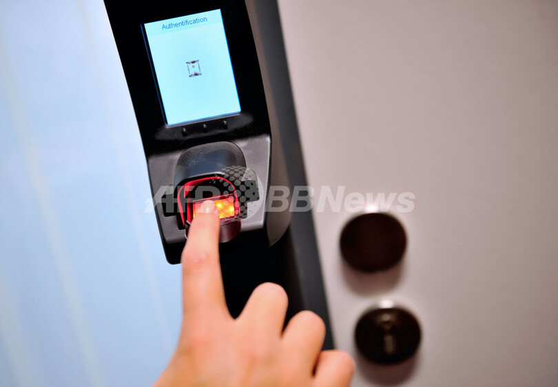 写真は、仏北部リール(Lille)のナチュラル・セキュリティー本社で披露される指紋認証装置(2012年10月18日撮影)。(c)AFP/PHILIPPE HUGUEN