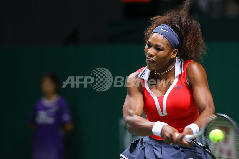 リターンを打つセレーナ・ウィリアムス(2012年10月24日撮影)。(c)AFP