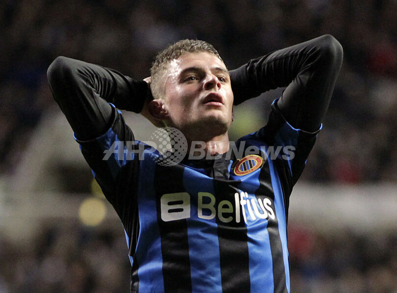 好機を逸し頭を抱えるクラブ・ブルージユのマキシム・レスティエンヌ(Maxime Lestienne、2012年10月25日撮影)。(c)AFP/GRAHAM STUART