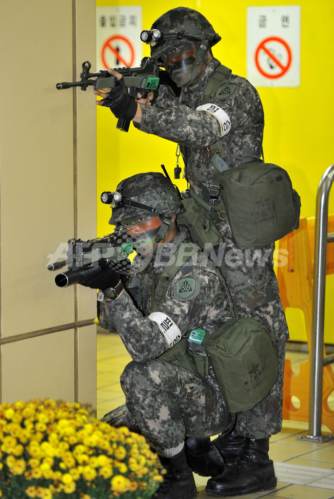 これに先立ち24日には、ソウル(Seoul)で特殊部隊などが参加して対テロ訓練も行われた。(c)AFP