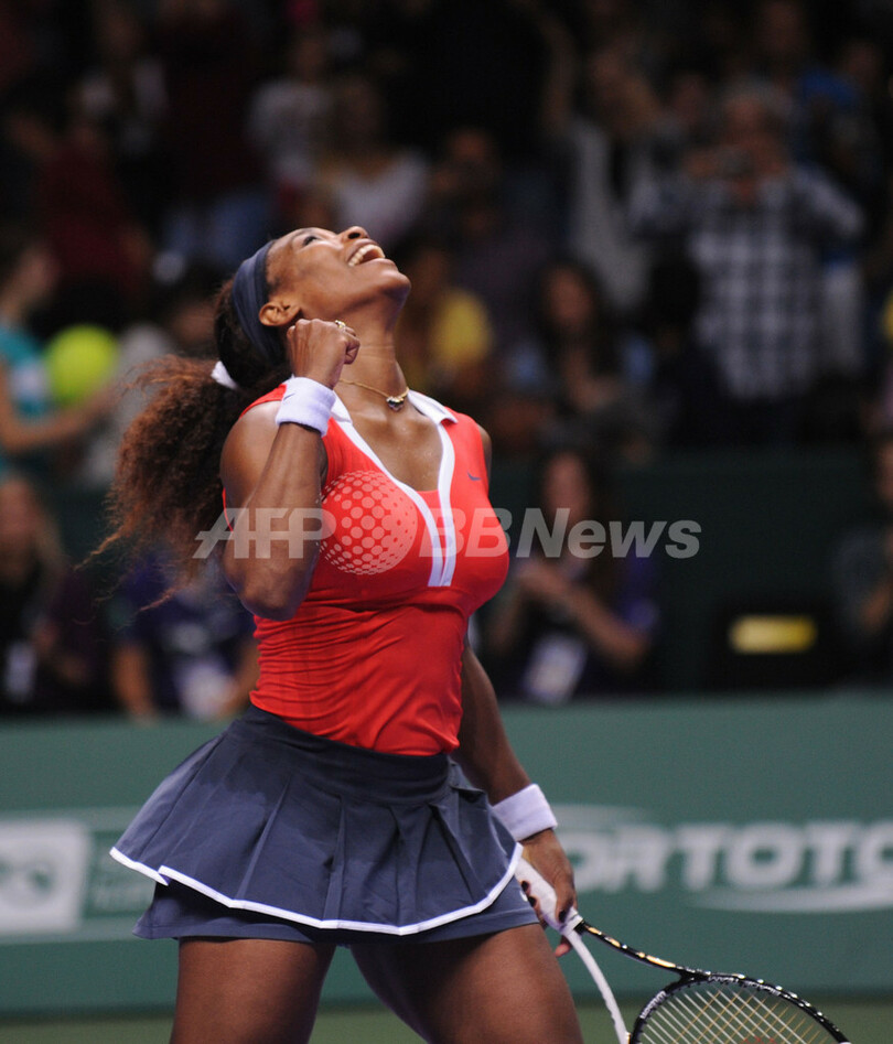 試合に勝利し歓喜するセレーナ・ウィリアムス(2012年10月28日撮影)。(c)AFP/BULENT KILIC