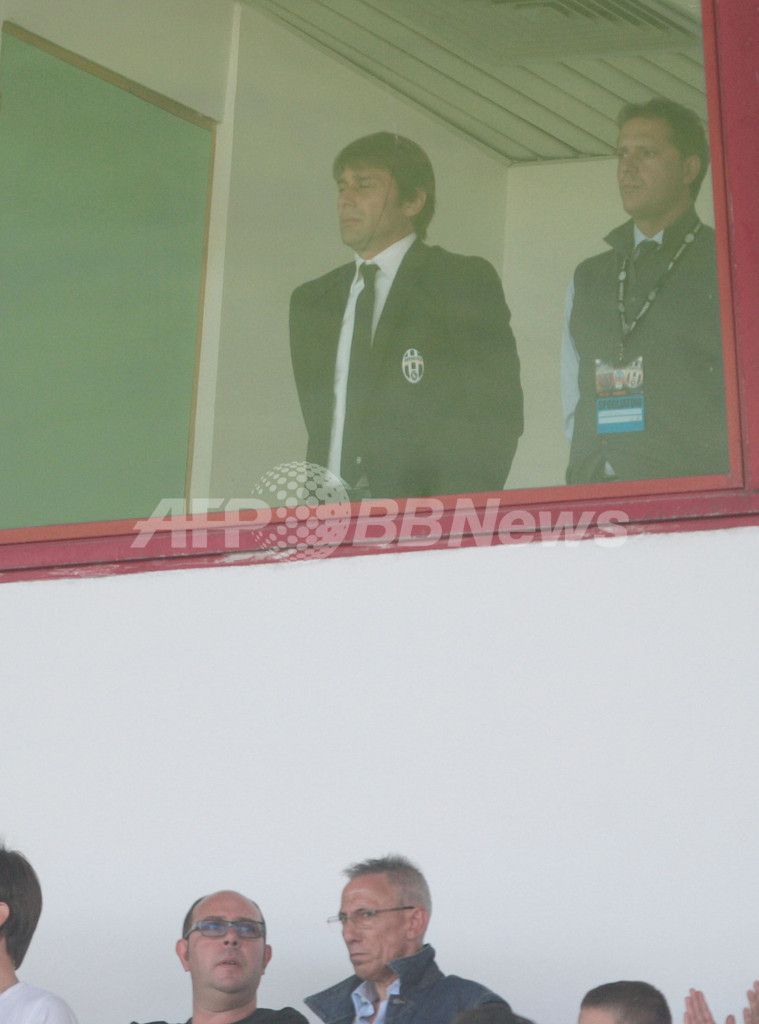 スタンドから試合を見守る資格停止処分中のユベントスのアントニオ・コンテ(Antonio Conte)監督、2012年10月28日撮影)。(c)AFP/MARCELLO PATERNOSTRO