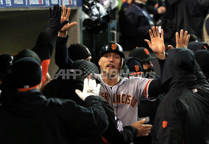 また、今シリーズの最優秀選手(MVP)にはジャイアンツのパブロ・サンドバル(Pablo Sandoval)が選出された。その巨体から「カンフーパンダ」のニックネームを持つサンドバルは、第1戦に3本塁打を放つなど、4試合で16打数8安打を記録した。(c)AFP/Jim Slater