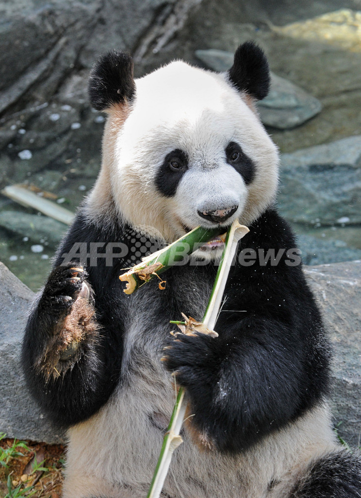 写真は専用施設内で竹を食べる凱凱(2012年10月29日撮影)。(c)AFP/ROSLAN RAHMAN