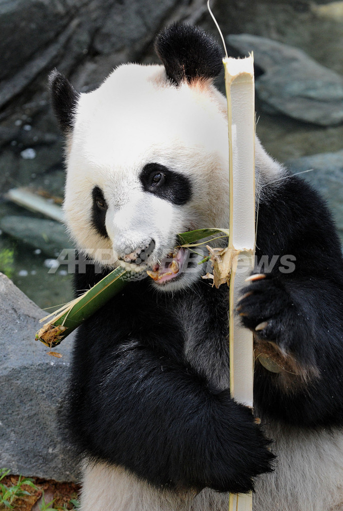 写真は専用施設内で竹を食べる凱凱(2012年10月29日撮影)。(c)AFP/ROSLAN RAHMAN