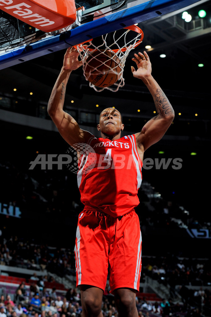 ダンクシュートを決めるヒューストン・ロケッツのグレッグ・スミス(Greg Smith、2012年10月31日撮影)。(c)AFP/Getty Images/NBAE/Allen Einstein