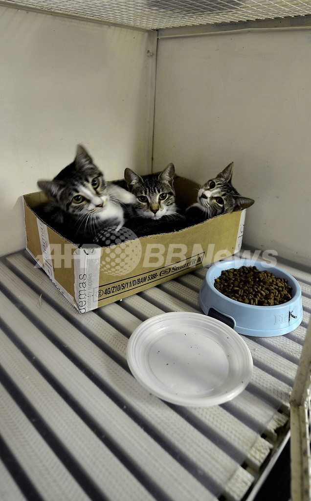 これに対し考古学当局側は、「一掃」するのは遺跡に中に無断で作られた建造物であってネコではないと声明を発表し、NPOの懸念の払拭をはかった。写真は、「アルジェンティーナ広場のネコ・コロニー」本部で貰い手の登場を待つネコたち(2012年10月30日撮影)。(c)AFP/Filippo MONTEFORTE