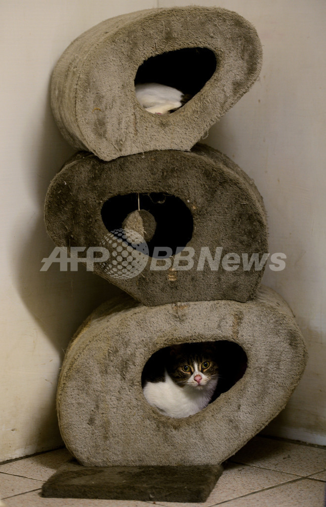 これに対し考古学当局側は、「一掃」するのは遺跡に中に無断で作られた建造物であってネコではないと声明を発表し、NPOの懸念の払拭をはかった。写真は、「アルジェンティーナ広場のネコ・コロニー」本部で貰い手の登場を待つネコたち(2012年10月30日撮影)。(c)AFP/Filippo MONTEFORTE