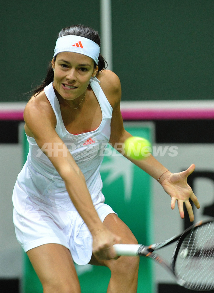 リターンを打つアナ・イワノビッチ(2012年11月3日撮影)。(c)AFP/MICHAL CIZEK