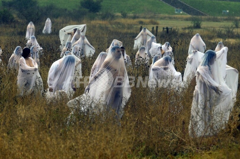 メキシコ中部グアナフアト(Guanajuato)州で4日、集団ヌード写真で知られる米写真家のスペンサー・チュニック(Spencer Tunick)氏による撮影が行われた。チュニック氏は、「死者の日(Day of the Dead)」の撮影のためだけに日帰りでメキシコを訪れた。